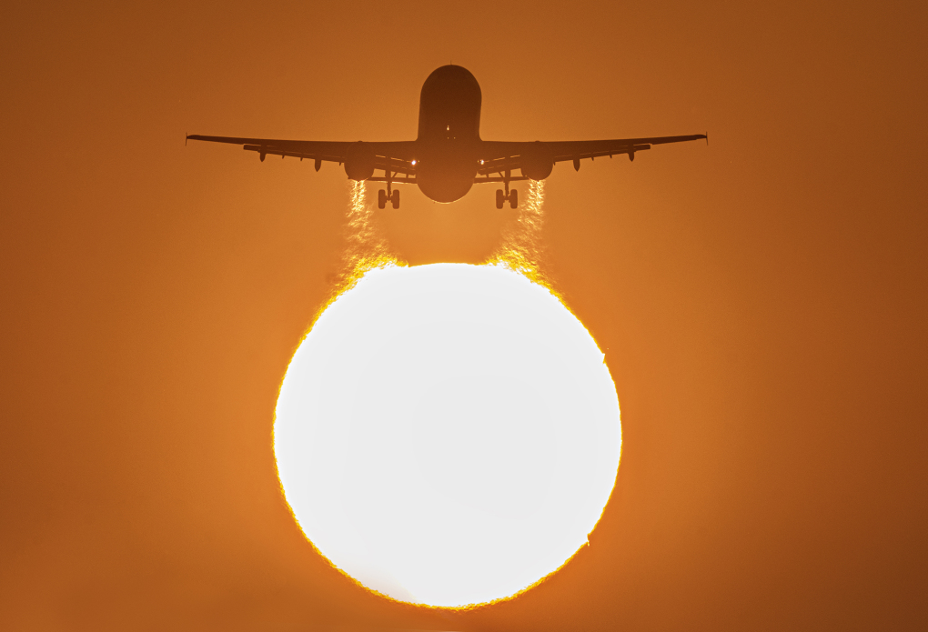 Ngày 31/5/2023, Hà Nội nắng nóng gay gắt, máy bay để lộ những vệt nhiên liệu xả ra sau ánh mặt trời. Ảnh: Ngọc Thành